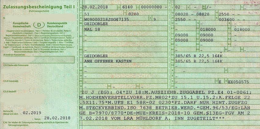 Geidobler NAL 18 Baustoffanhänger EZ 02 / 2018